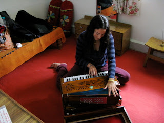The first incarnation of the Yoga Birds Kirtan Choir just happened at the studio! A huge thanks to all who participated. It was a sincere endeavor into the unification of breath, voice, tone, vibration, and mantra. We did breathing and simple movement exercises to warm up the body. We did humming and singing long tones supported by the harmonium for vocal warm ups. The highlight was singing a complete song, Ganesha Sharanam, in traditional call and response Kirtan with harmonium accompaniment. All judgements about our voices and blockages to the harmonious radiant inner Self were dissolved by breathing well and singing the words and melodies. It was so good! For me in kirtan, the real magic happens in the potent silent spaces between songs. The high vibration created by the voices and music is a tangible slice of the transformative powers of bhakti yoga.